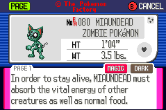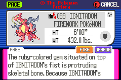 Welcome to the Factory Advance Main Archive, where the Pokémon Factory's central works are stored! This archive houses pokémon made in the style of Pokémon Advance (Ruby, Sapphire and Emerald Versions). Each pokédex entry is listed with the name of the person who suggested the idea to the Pokémon Factory, and the PF artist(s) who created the Pokédex shot. Further info includes the pokémon's Special Ability and Egg Group, its gender ratio, and a link to its Superdex entry, where more detailed information can be found.