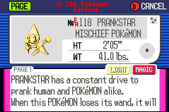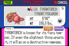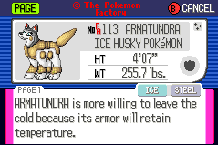 Welcome to the Factory Advance Main Archive, where the Pokémon Factory's central works are stored! This archive houses pokémon made in the style of Pokémon Advance (Ruby, Sapphire and Emerald Versions). Each pokédex entry is listed with the name of the person who suggested the idea to the Pokémon Factory, and the PF artist(s) who created the Pokédex shot. Further info includes the pokémon's Special Ability and Egg Group, its gender ratio, and a link to its Superdex entry, where more detailed information can be found.