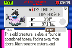 Welcome to the Factory Advance Main Archive, where the Pokémon Factory's central works are stored! This archive houses pokémon made in the style of Pokémon Advance (Ruby, Sapphire and Emerald Versions). Each pokédex entry is listed with the name of the person who suggested the idea to the Pokémon Factory, and the PF artist(s) who created the Pokédex shot. Further info includes the pokémon's Special Ability and Egg Group, its gender ratio, and a link to its Superdex entry, where more detailed information can be found.