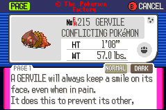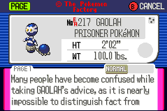 Welcome to the Factory Advance Main Archive, where the Pokémon Factory's central works are stored! This archive houses pokémon made in the style of Pokémon Advance (Ruby, Sapphire and Emerald Versions). Each pokédex entry is listed with the name of the person who suggested the idea to the Pokémon Factory, and the PF artist(s) who created the Pokédex shot. Further info includes the pokémon's Special Ability and Egg Group, its gender ratio, and a link to its Superdex entry, where more detailed information can be found.