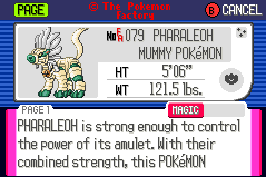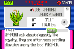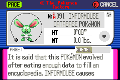 Welcome to the Factory Advance Main Archive, where the Pokémon Factory's central works are stored! This archive houses pokémon made in the style of Pokémon Advance (Ruby, Sapphire and Emerald Versions). Each pokédex entry is listed with the name of the person who suggested the idea to the Pokémon Factory, and the PF artist(s) who created the Pokédex shot. Further info includes the pokémon's Special Ability and Egg Group, its gender ratio, and a link to its Superdex entry, where more detailed information can be found.