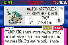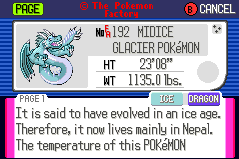 Welcome to the Factory Advance Main Archive, where the Pokémon Factory's central works are stored! This archive houses pokémon made in the style of Pokémon Advance (Ruby, Sapphire and Emerald Versions). Each pokédex entry is listed with the name of the person who suggested the idea to the Pokémon Factory, and the PF artist(s) who created the Pokédex shot. Further info includes the pokémon's Special Ability and Egg Group, its gender ratio, and a link to its Superdex entry, where more detailed information can be found.